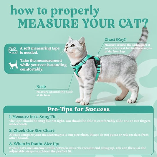 rabbitgoo Cat Harness and Leash for Walking, Escape Proof Soft Adjustable Vest Harnesses for Cats, Easy Control Breathable Reflective Strips Jacket, Emerald, M