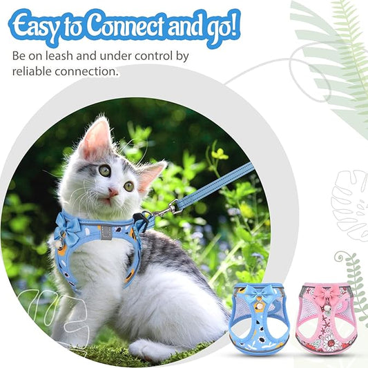 rabbitgoo Cat Harness and Leash for Walking, Escape Proof Soft Adjustable Vest Harnesses for Cats, Easy Control Breathable Reflective Strips Jacket, Light Blue&Pink, XXS