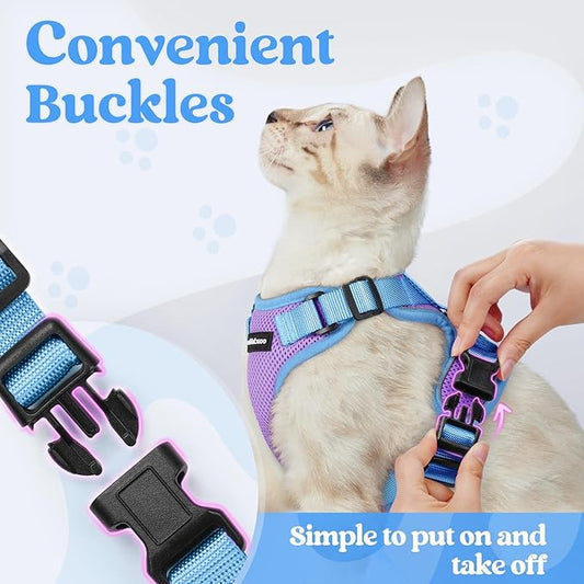 rabbitgoo Cat Harness and Leash Set, Escape Proof Soft Adjustable Vest Harnesses for Outdoor Walking, Easy Control Breathable Kitten Jacket with Reflective Strips, Purple & Blue, M