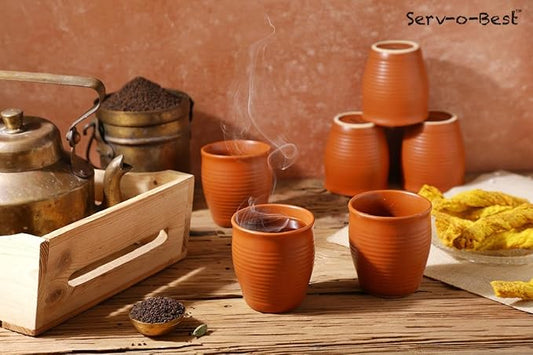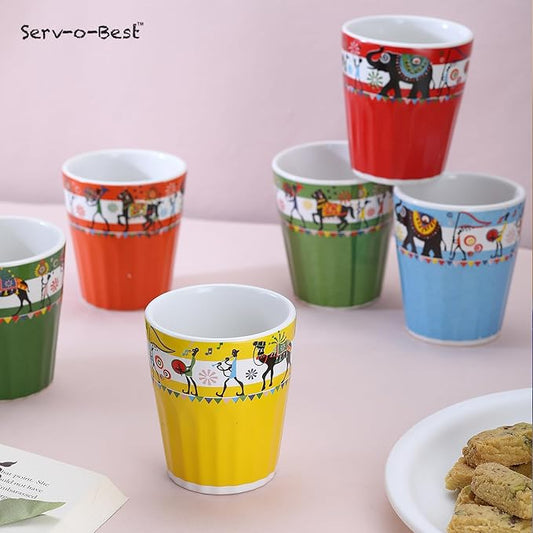 Handmade Ceramic Tea Cups Set – 6 Desi Kulhad Chai/Coffee Cups (5 oz Capacity), Lead-Free, Dishwasher & Microwave Safe, Glazed, Glossy finish Clay Tea Cups/kulhar/kullar - Multicolor