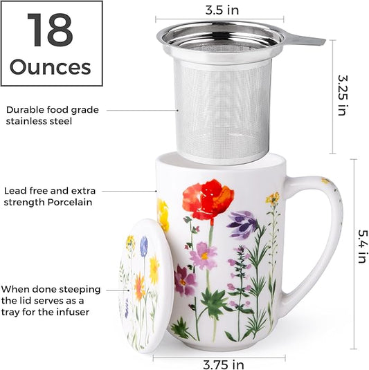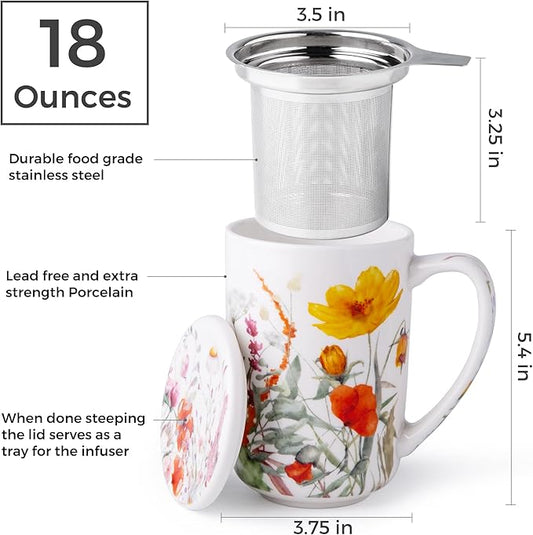 AmorArc Porcelain Tea Mug with Infuser and Lids, 18 Oz Coffee Cup Strainer with Bag Holder for Loose Leaf Tea, Tea Steeping Coffee Mug for House-warming Wedding Birthday Gift