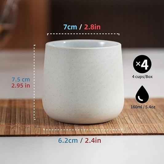 TEANAGOO Japanese Tea Cups, Chinese Tea Cup, 7.2Oz / 205 Ml, Ceramic Tea Cups for Adults, Ceramic Cups no Handles, Japanese Cups, Matcha Cup, Lt.Grey, 4 Pcs/Box, H5
