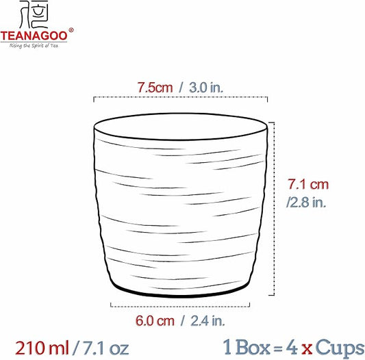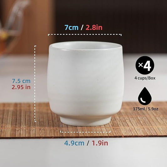 TEANAGOO Japanese Tea Cup, 7.1 Oz / 210 ml, Pure White, 4 Pcs/Box, Asian Tea Cup, Microwave & Dishwasher Safe