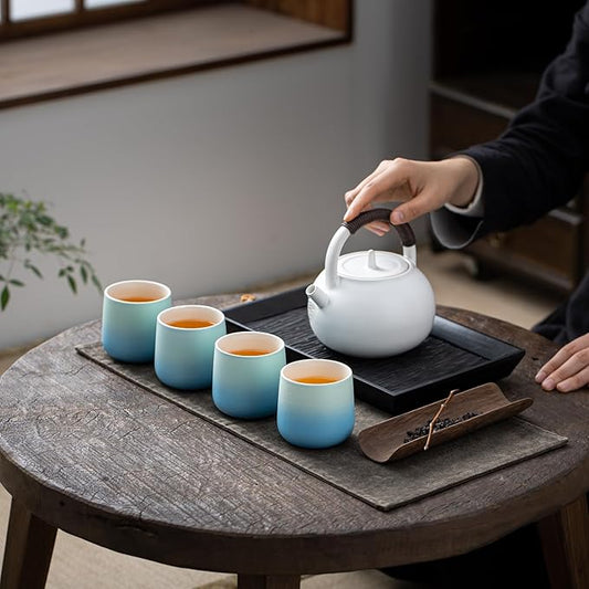 TEANAGOO Japanese Tea Cup, 7.2Oz / 205 ml, Japansese Cups,Chinese Tea Cups, Asian Tea Cups No Handles, Ceramic Cup For Japanese, Blue White Gradient, 4 Pcs/Box, H31