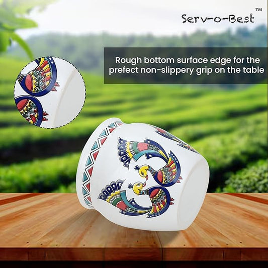 Handmade Ceramic Tea Cups Set – 6 Desi Kulhad Chai/Coffee Cups (5 oz Capacity), Lead-Free, Dishwasher & Microwave Safe, Glazed, Glossy finish Clay Tea Cups/kulhar/kullar - Peacock Design