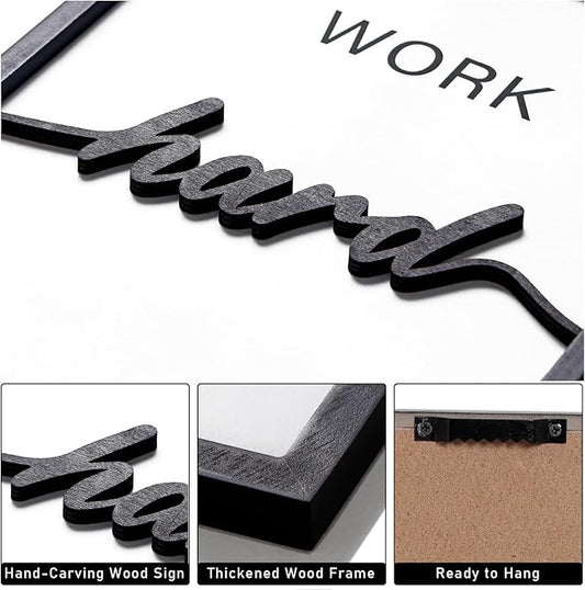 3D Wood Inspirational Office Wall Decor, 48" x 24" Framed Grind Hustle Success Motivational Wall Art, Positive Quotes Wall Art for Home Office Bedroom (Ready to Hang, Set of 3, Framed)