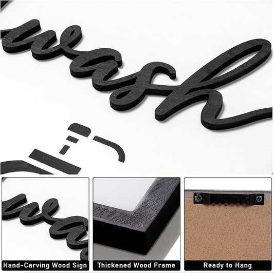 3D Wood Funny Bathroom Wall Art, Framed Black and White Bathroom Pictures Wall Decor, Cute Toilet Pictures for Bathroom Signs Decor(Ready to Hang, 12x16 inches, Set of 3, Framed)