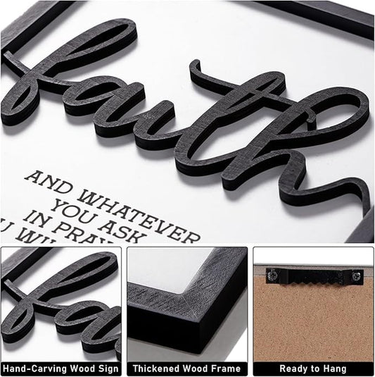 3D Wood Faith Hope Love Wall Decor, Christian Wall Art Bible Verses Wall Decor Scripture Wall Art for Bedroom Bathroom Kitchen Living Room Office(12x16 inches, Set of 3, Framed)