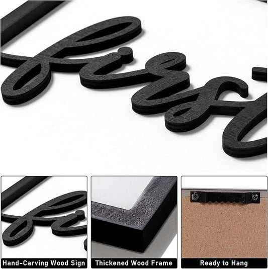 3D Wood Living Room Wall Decor, Live Laugh Love Wall Decor, Framed Love Wall Art for Living Room Bedroom Home(Ready to Hang, 12x16 Inch, Set of 3, Framed)