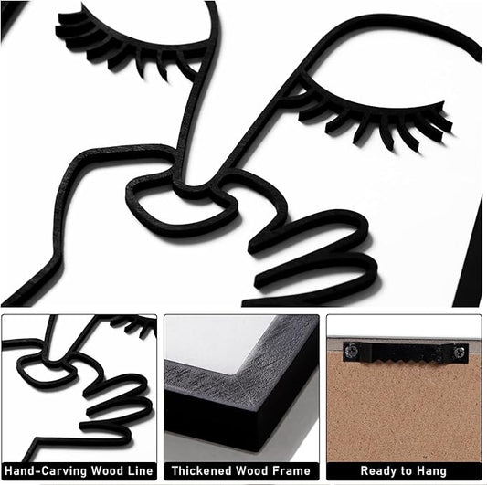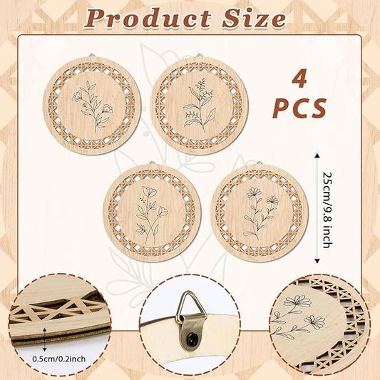 HPNIUB Minimalist Floral Wall Decor, Farmhouse Line Botanical Hanging Wooden Sign Wall Art, 4 Pieces 9.8''x9.8'' Aesthetic Flowers Leaf Wood Plaque, Modern Neutral Pictures for Living Room Office