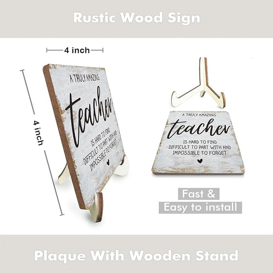 Decorative Desk Decor Motivational Teacher Gift Positive Thank You Gifts Teacher Appreciation Gifts Plaque with Wooden Stand Inspirational Wood Sign for Coach Teacher Coworker Home Office Table Shelf