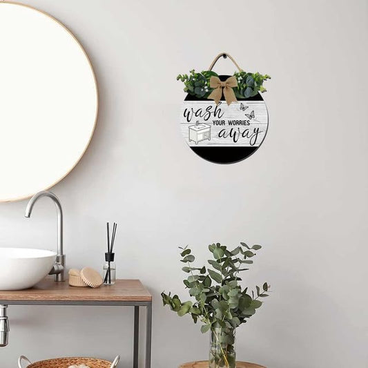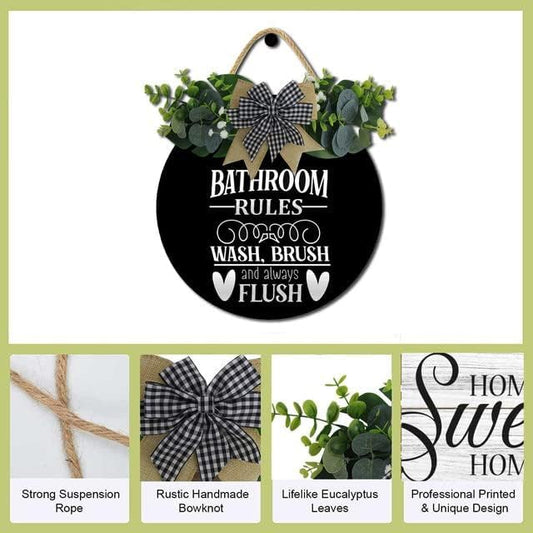 Bathroom Wall Decor,Bathroom Sign,Rustic Round Wooden Wreath Sign,Bathroom Wooden Wall Sign for All The Seasons