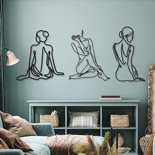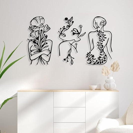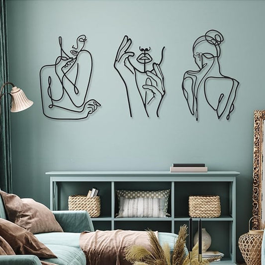 Photect 3 Pcs Metal Wall Art Decor Minimalist Abstract Woman Wall Art Metal Modern Line Drawing Decor Female Single Line Home Hanging for Bedroom Bathroom Living Room Christmas Housewarming(Stylish)