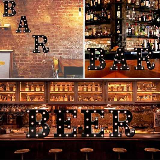 Black Bar Sign, Marquee Light Up Letters LED Marquee Number Lights Sign for Night Light Home Bar Christmas Lamp Birthday Party Wedding Decoration-BAR