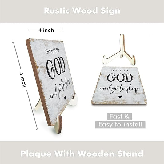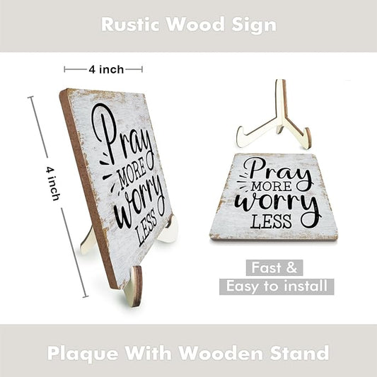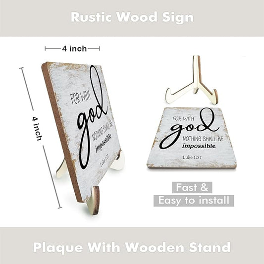 Inspirational Sign Rustic Desk Decor Decorative Christian Gifts Religious Bible Verse Faith Decoration for Home Coffee Shop Office Table Shelf Tiered Tray Plaque with Wood Stand