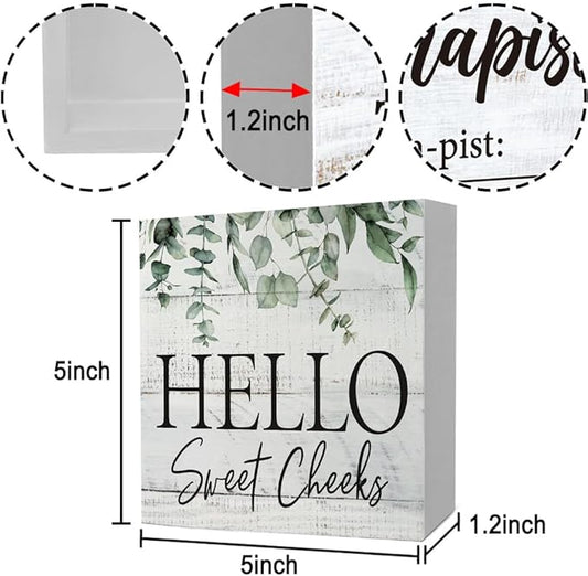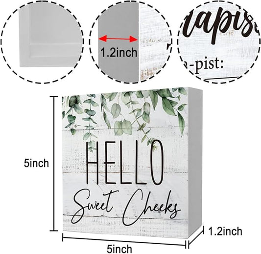 Rustic Bathroom Decor Farmhouse Hello Sweet Cheeks Wooden Sign, Toilet Rules Decoration for Farmhouse Apartment Shelves Toilet Restroom Home Tabletop Desk, Modern Toilet Shelves Accessory (Eucalyptus2)