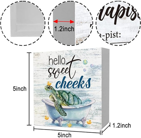 Rustic Bathroom Decor Farmhouse Hello Sweet Cheeks Wooden Sign, Toilet Rules Decoration for Farmhouse Apartment Shelves Toilet Restroom Home Tabletop Desk, Modern Toilet Shelves Accessory (Sea Turtle)