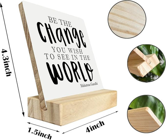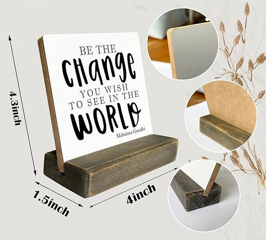 Primitive Wooden Sign, Be the Change You Wish to See in the World, Desk Plaque with Wooden Stand 4 x 4.3 inches, Mahatma Gandhi Saying, Decor for Kids Room, Home Decor, Graduation Gift A