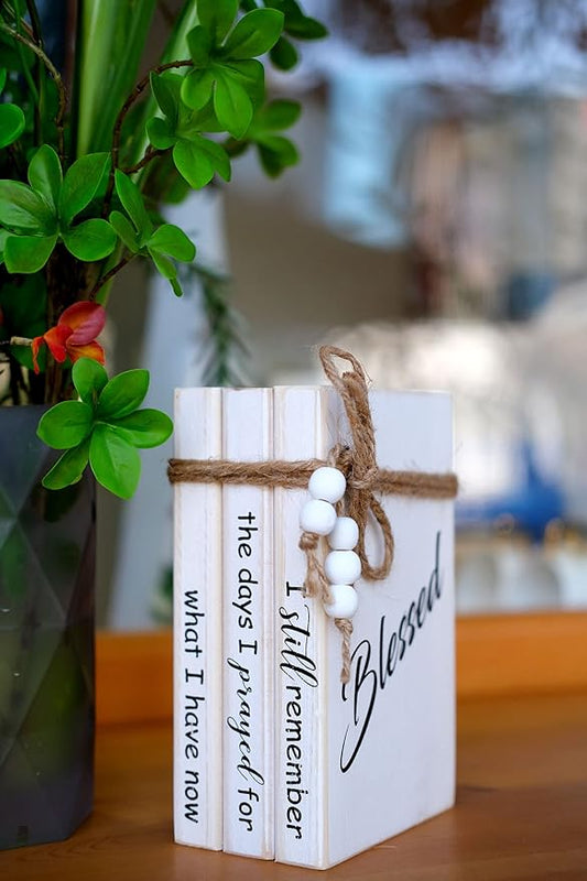 LIVDUCOT Wooden Decorative Books Stack for Coffee Table Faux Book Stack for Decoration I Still Remember the Days I Prayed Modern Farmhouse Decor White Book Decor for Shelf Mantle 7.5x5x3'