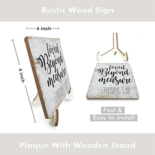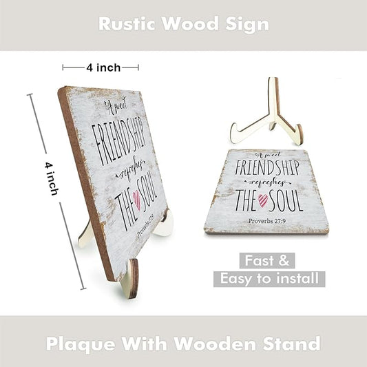 Inspirational Sign Rustic Desk Decor Decorative Christian Friendship Gifts Religious Bible Verse Faith Decoration for Home Farmhouse Office Table Shelf Tiered Tray Plaque with Wood Stand