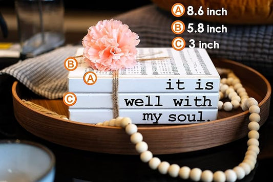 LIVDUCOT Farmhouse Faux Wooden Decorative Book Stack Decor Set with Flower & 58in Wood Bead Garland with Tassels Decor for Coffee Table/Shelf/Fireplace/Mantle It is Well With My Soul Sign 8.5x5.7x3"