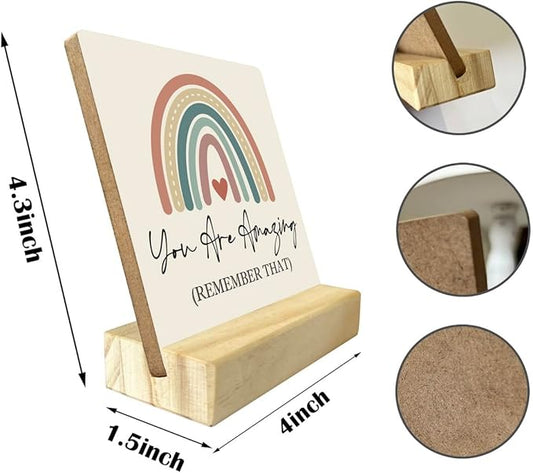 Primitive Wooden Sign, You are Amazing Remember That, Desk Plaque with Wooden Stand 4 x 4.3 inches, Rustic Home Decor, Farmhouse Sign, Inspirational Quotes Gifts for Friend Family, Cheer Up Gift