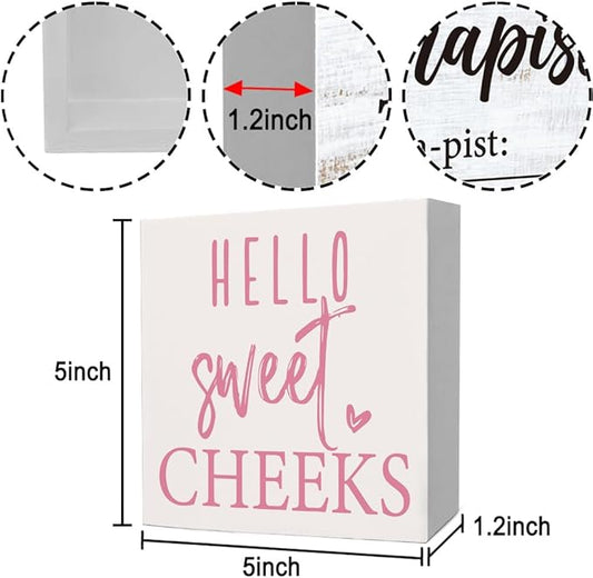 Rustic Bathroom Decor Farmhouse Hello Sweet Cheeks Wooden Sign, Toilet Rules Decoration for Farmhouse Apartment Shelves Toilet Restroom Home Tabletop Desk, Modern Toilet Shelves Accessory (Cute Pink)