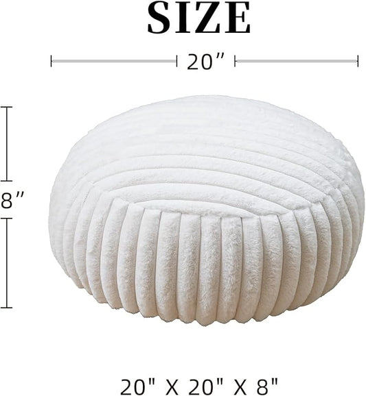 Unstuffed Pouf Ottoman Cover Soft Storage Extra Seat Farmhouse Comfortable Bohemian Poufs Accent Footrest 20x20x8 Inches for Living Room Bedroom Study Nook (White, Round)