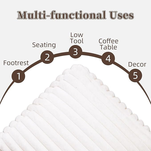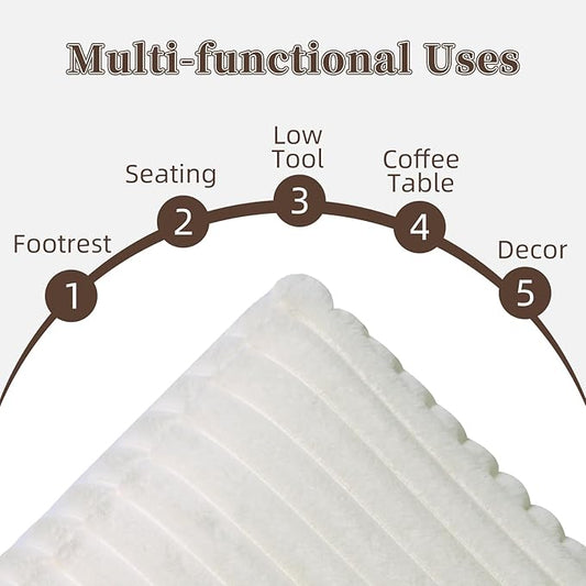 Unstuffed Pouf Ottoman Cover Soft Storage Extra Seat Farmhouse Comfortable Bohemian Poufs Accent Footrest 20x20x8 Inches for Living Room Bedroom Study Nook (White, Square)