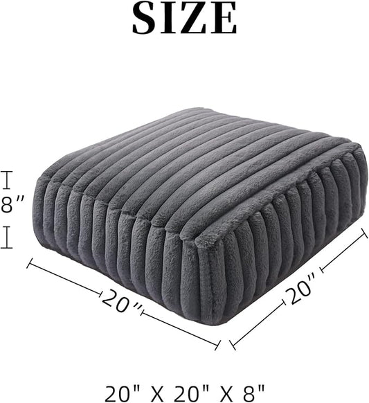 MeMoreCool Square Stuffed Pouf Ottoman Foot Rest, Stripe Furry Floor Pouf Foot Stool with Foam Chunk Filling, Soft Fluffy Stuffed Ottoman Footrest for Living Room, Faux Fur Grey