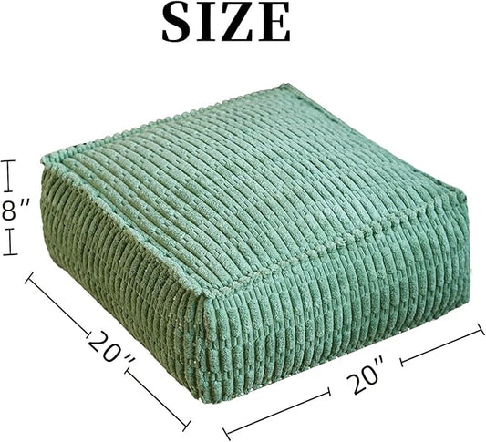 Unstuffed Pouf Ottoman Cover Soft Storage Extra Seat Farmhouse Comfortable Bohemian Poufs Accent Footrest 20x20x8 Inches for Living Room Bedroom Study Nook (Green, Square)