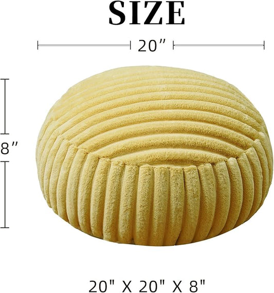 Unstuffed Pouf Ottoman Cover Soft Storage Extra Seat Farmhouse Comfortable Bohemian Poufs Accent Footrest 20x20x8 Inches for Living Room Bedroom Study Nook (Yellow, Round)
