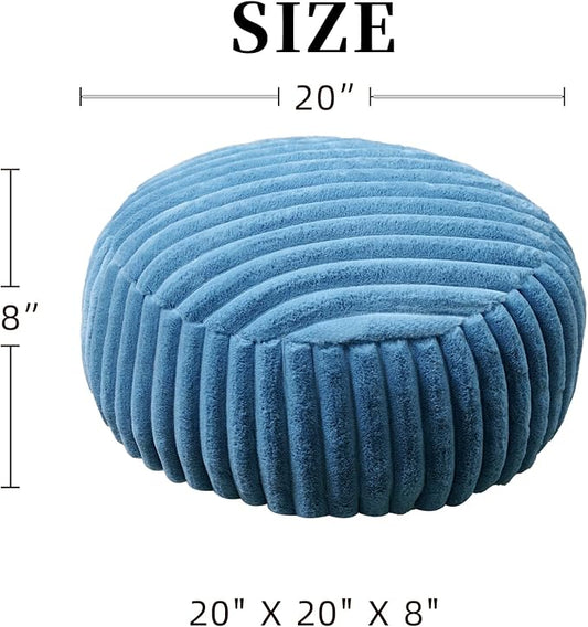 Unstuffed Pouf Ottoman Cover Soft Storage Extra Seat Farmhouse Comfortable Bohemian Poufs Accent Footrest 20x20x8 Inches for Living Room Bedroom Study Nook (Blue, Round)