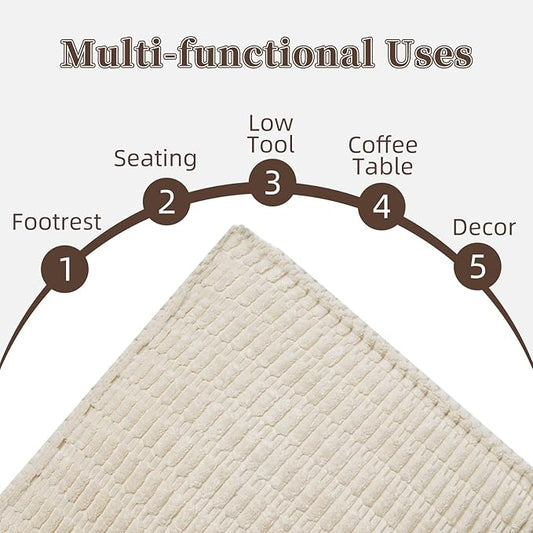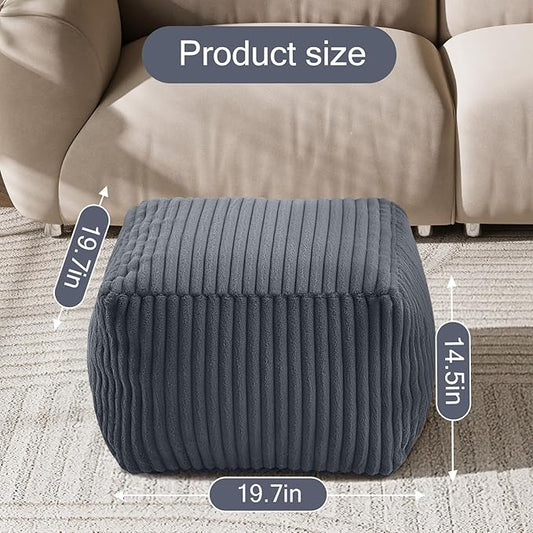 Unstuffed Pouf Ottoman Soft Square Bean Bag Storage Pouf Cover 20x20x8 Inches Decorative Floor Footrest for Living Room Bedroom Outdoor (Beige, Square)