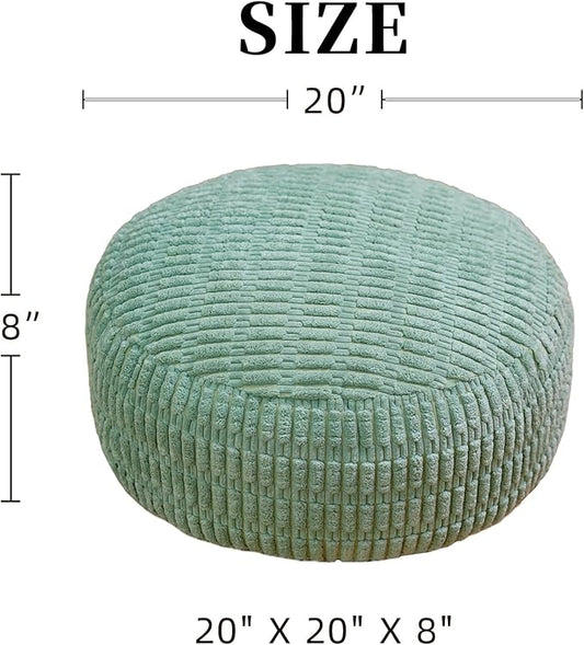 Unstuffed Pouf Ottoman Cover Soft Storage Extra Seat Farmhouse Comfortable Bohemian Poufs Accent Footrest 20x20x8 Inches for Living Room Bedroom Study Nook (Green, Round)