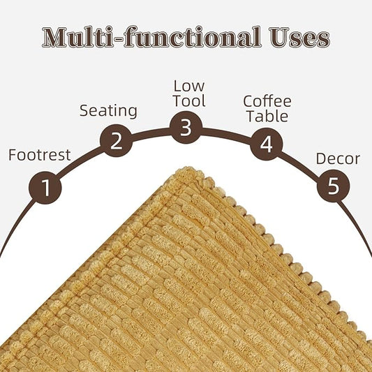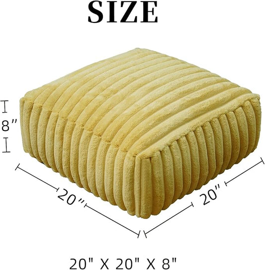 Unstuffed Pouf Ottoman Cover Soft Storage Extra Seat Farmhouse Comfortable Bohemian Poufs Accent Footrest 20x20x8 Inches for Living Room Bedroom Study Nook (Yellow, Square)