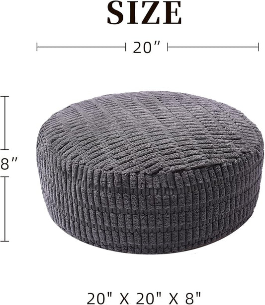 Unstuffed Pouf Ottoman Cover Soft Storage Extra Seat Farmhouse Comfortable Bohemian Poufs Accent Footrest 20x20x8 Inches for Living Room Bedroom Study Nook (Gray A, Round)