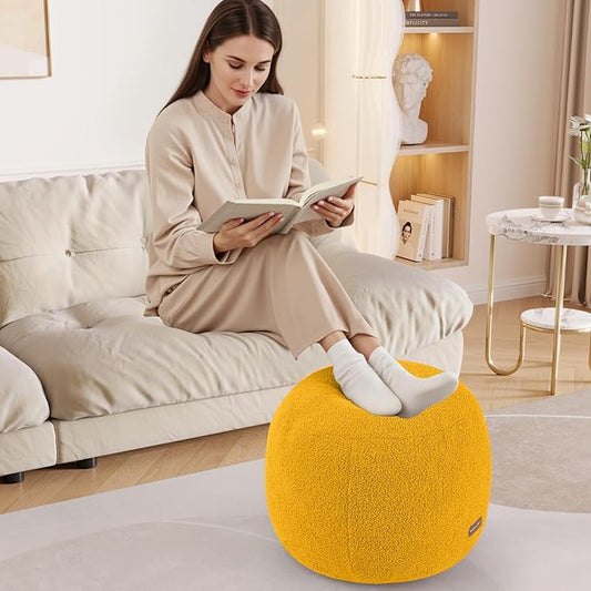 MeMoreCool Stuffed Round Pouf Ottoman Foot Rest, Floor Pouf Foot Stool with Soft Foam Chunk Filling, Small Round Ottoman Footstool Circle Footrest for Living Room, Yellow