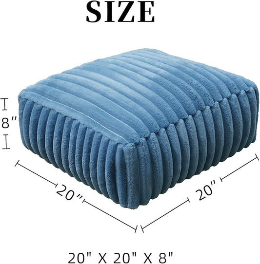Unstuffed Pouf Ottoman Cover Soft Storage Extra Seat Farmhouse Comfortable Bohemian Poufs Accent Footrest 20x20x8 Inches for Living Room Bedroom Study Nook (Blue, Square)