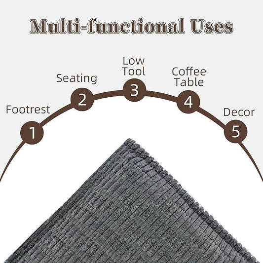 Unstuffed Pouf Ottoman Cover Soft Storage Extra Seat Farmhouse Comfortable Bohemian Poufs Accent Footrest 20x20x8 Inches for Living Room Bedroom Study Nook (Gray B, Square)