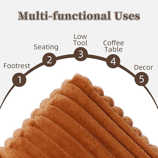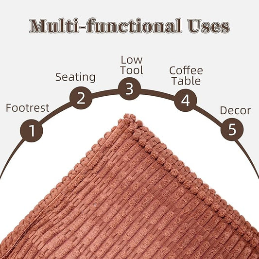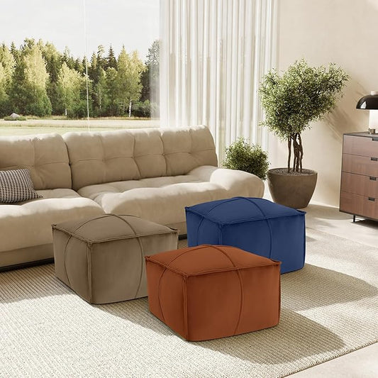 Unstuffed Pouf Ottoman Cover Soft Storage Extra Seat Farmhouse Comfortable Bohemian Poufs Accent Footrest 20x20x8 Inches for Living Room Bedroom Study Nook (Caramel B, Square)