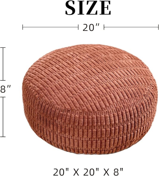 Unstuffed Pouf Ottoman Soft Bean Bag Storage Farmhouse Pouf Cover 20x20x8 Inches Decorative Floor Footrest for Living Room Bedroom Outdoor (Caramel, Round)