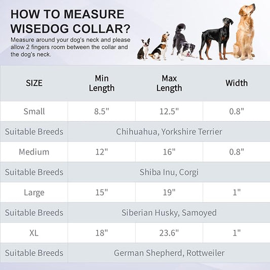 Wisedog Waterproof Dog Collar, Adjustable Soft Rubber Coated Webbing, Odor-Proof and Easy to Clean for Small Medium Large Dogs with Airtags Case(L|15"-19" × 1 in, Black)