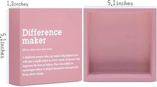 Difference Maker Definition Home Office Decor Wooden Box Sign, Motivational Retirement Thank You Gifts for Women Teacher Boss Lady Mom Coworker Farmhouse Desk Decor Table Shelf Wall Display, Pink