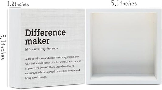 Difference Maker Definition Home Office Decor Wooden Box Sign, Motivational Farmhouse Decorative Positive Office Desk Accessories Wood Plaque Affirmations Wood Table Sign for TV Cabinet Shelf