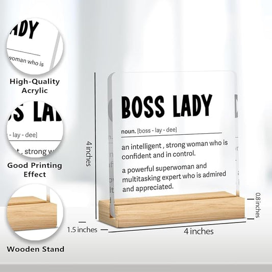 Funny Boss Gifts for Women Men,Boss Lady Gifts for Women Office Decor Acrylic Plaque Leadership Best Thank You Gifts for Boss Manager Mentor Inspirational Gift 4x4 Inches
