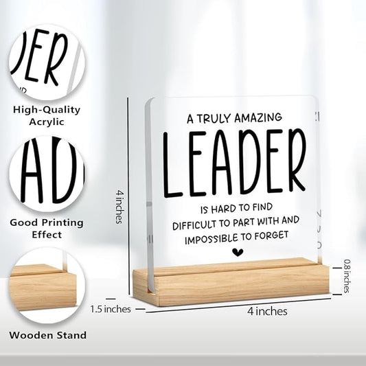 Funny Boss Gifts for Women Men Office Decor Acrylic Plaque Leadership Thank You Gifts for Boss Manager Mentor Inspirational Leader Journal Gift 4x4 Inches