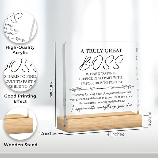 Funny Boss Gifts for Women Men Office Decor Acrylic Plaque Leadership Thank You Appreciation Gifts for Boss Manager Mentor Inspirational Gift 4x4 Inches