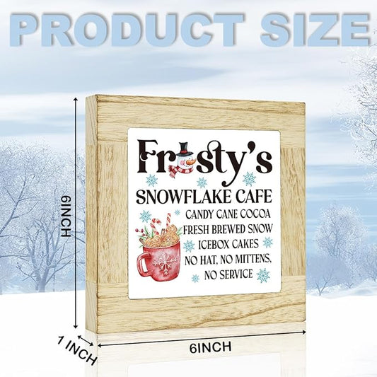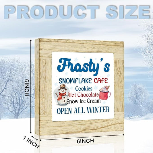 Winter Hot Cocoa Bar Sign Winter Snowman Signs for Home Decor Coffee Bar Christmas Decor for Table Frosty's Snowflake Cafe Sign 6 x 6 inches