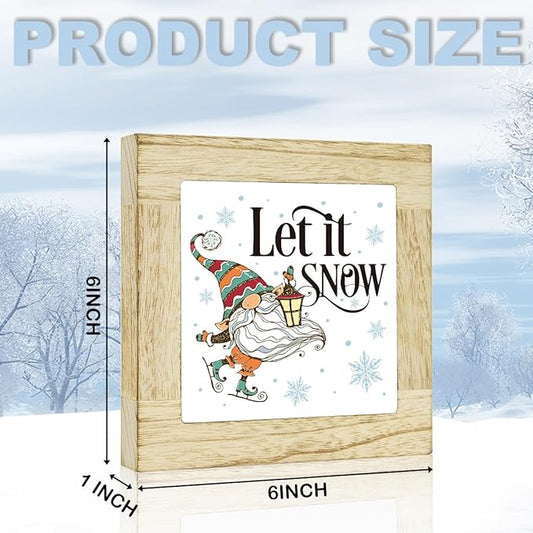 Let It Snow Decor Winter Table Decor for Home Winter Snowman Decorations Christmas Holiday Decorations for Desk 6 x 6 inches